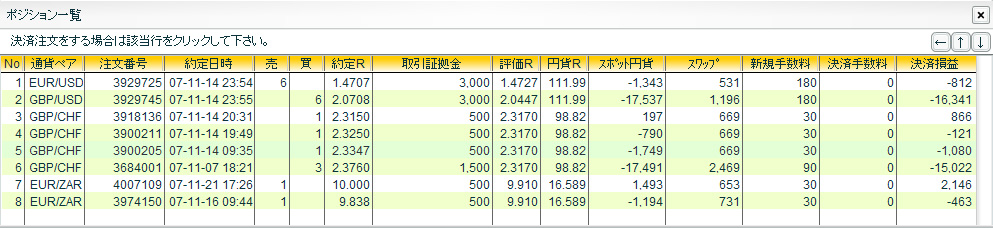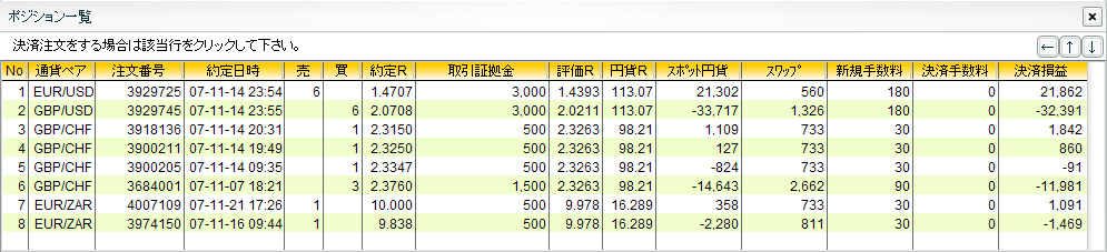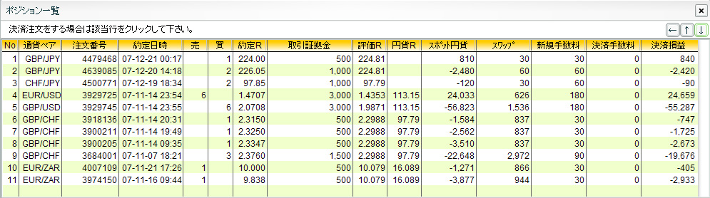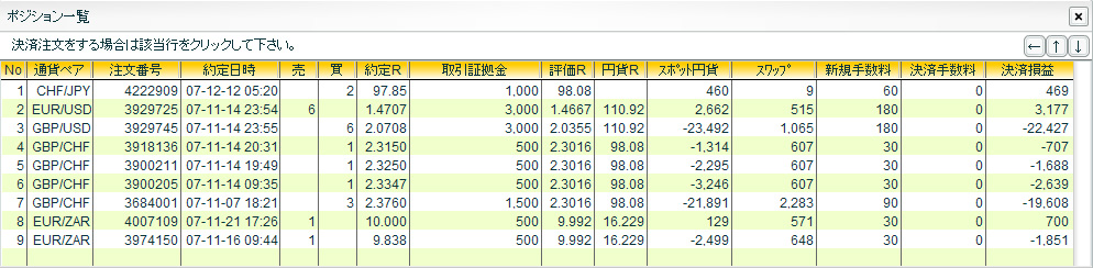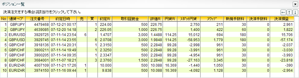 × [PR]上記の広告は3ヶ月以上新規記事投稿のないブログに表示されています。新しい記事を書く事で広告が消えます。 ずいぶんと間があいてしまいましたが、なんとか生きておりますぞい。 FXの方がさえないのはいつものことなのでまあいいんだけど、実はご主人様がなにやら大変なようで… ぴーちゃん家始まって以来の重大イベントになっちゃってるので、ぴーちゃんもご主人様にのお世話に忙しくってなかなか更新できませんですわい>< しばらくの間更新に間があいてしまうと思うけど、詳しいことは一段落したらお伝えしていこうと思ってますぞい。 それでは一応、取引状況を書いておくぞい^^; GBP/USD 買 6000@2.0708 →1.9354(-83,372円) EUR/USD 売 6000@1.4707 →1.4640(+5,374円) 最悪のタイミングでポジションを落としてしまったぞい>< EUR/USD 買 3000@1.4534 →1.4400(-4,260円) 押し目を買って底値で投げですワイ>< GBP/JPY 買 3000@205.50 →204.85(-1,950円) これもですワイ>< GBP/CHF 買 1000@2.1335 →2.1500(+1,722円) EUR/ZAR 売 1000@10.3400 USD/ZAR 売 1000@7.1000 以上ですわい。 ではでは、これからもみなさんにいいことがありますように~☆ ※塩漬けスワップ用 GBP/CHF 買 8000@2.3290 EUR/ZAR 売 3000@10.0593 USD/ZAR 売 1000@7.1000 元金30万円 ヒロセ通商 インコ好きの方々もポチっとお願いいたします。 ![]() PR どうも ぴーちゃんです☆ちょっと変わったサービスの業者を見つけましたぞい。 なにやら取引量に応じて 手数料がバックされるようなんですわい。といっても、もともと手数料は無料なので、実質 手数料がマイナスになるっていうのがポイントらしいんですぞい。ただ、取引量が少ない場合はミニマムチャージがかかるそうなので、ちょっと大口で取引する人向けですわい。 FX手数料は、「払う」から「もらう」時代へ。 FX投資は、ユニークなサービスのNDCオンライン。 さてさて、取引のほうはポンド安のあおりをもろに受けて瀕死だけど、ゆったり構えてやるつもりですわい。 まだまだ一年長いですから…。気長にいくぞ~い^^ ではでは、今日もみなさんにいいことがありますように~☆ ※塩漬けサヤ取り用 GBP/USD 買 6000@2.0708 EUR/USD 売 6000@1.4707 サヤ値:0.6001※塩漬けスワップ用 GBP/CHF 買 8000@2.3290 EUR/ZAR 売 2000@9.9190元金30万円 ヒロセ通商 インコ好きの方々もポチっとお願いいたします。 ![]() どうも ぴーちゃんです☆正月休みを満喫!のつもりだったんだけど、ビックリするほどの円高ですわい。 でも大丈夫!ちっとも円売ってないんで…なんて思ってたら、それ以上にポンド安がまずいですぞい>< お小遣い激減で正月早々やる気が失せそうですが、なんとか気を取り直していきたいですわい。 ではでは、今年もみなさんにいいことがありますように~☆ ※塩漬けサヤ取り用 GBP/USD 買 6000@2.0708 EUR/USD 売 6000@1.4707 サヤ値:0.6001※塩漬けスワップ用 GBP/CHF 買 8000@2.3290 EUR/ZAR 売 2000@9.9190元金30万円 ヒロセ通商 インコ好きの方々もポチっとお願いいたします。 ![]()